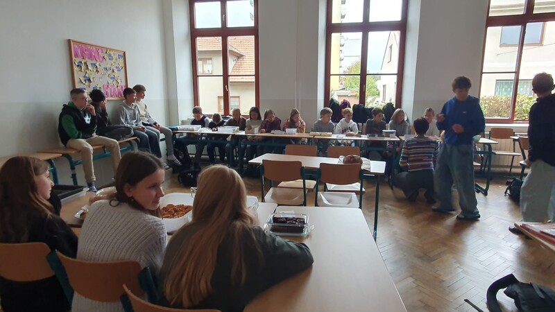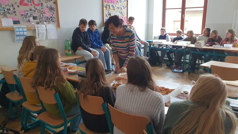 Jako doplnění tradiční akce si letošní sekundáni připravili „férovou svačinu“. Přinesli dezerty, pomazánky, domácí chléb, sušené ovoce. Jedinou podmínkou bylo při výrobě využít buď lokálních zdrojů, nebo surovin certifikovaných značkou Fairtrade. Vlastnoručně vyráběné dobroty si vzájemně ochutnávali a hodnotili. Někteří žáci důkladně zkoumali nabídku zdejších obchodů vzhledem k fairtradovým produktům a celkově si dali hodně záležet. Všechny svačiny byly chutné i krásné a je na místě poděkovat i rodičům za to, že děti v jejich práci podporovali.