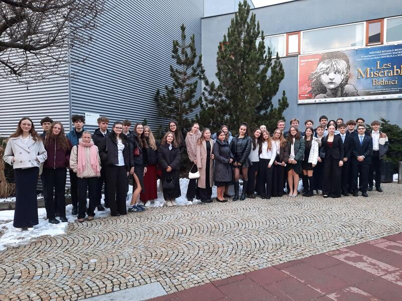 Jímavé osudy Jeana Valjeana a dalších postav muzikálového zpracování proslulého románu Victora Huga Bídníci přivedly v úterý 17. 2. studenty kvarty a prvního a druhého ročníku vyššího gymnázia na hudební scénu Městského divadla v Brně.